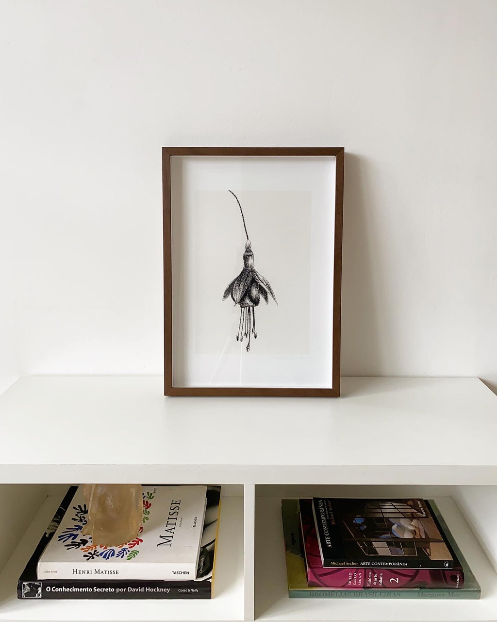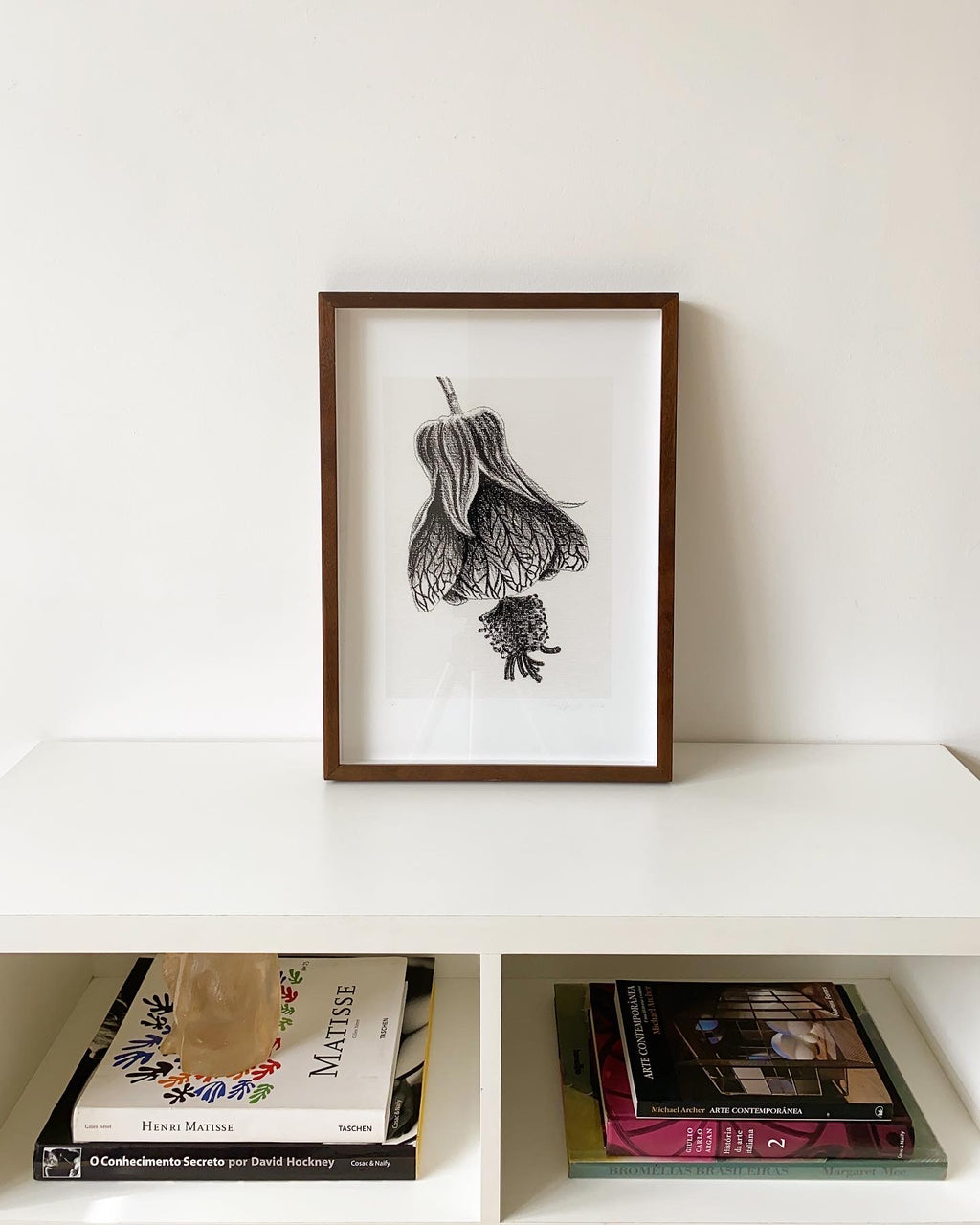 Impressões Fine Art feitas a partir de desenhos originais em carvão sobre papel, com tiragem limitada, numeradas e assinadas com lápis grafite na parte da frente. Cada obra é acompanhada por um certificado chancelado e assinado, atestando sua autenticidade.