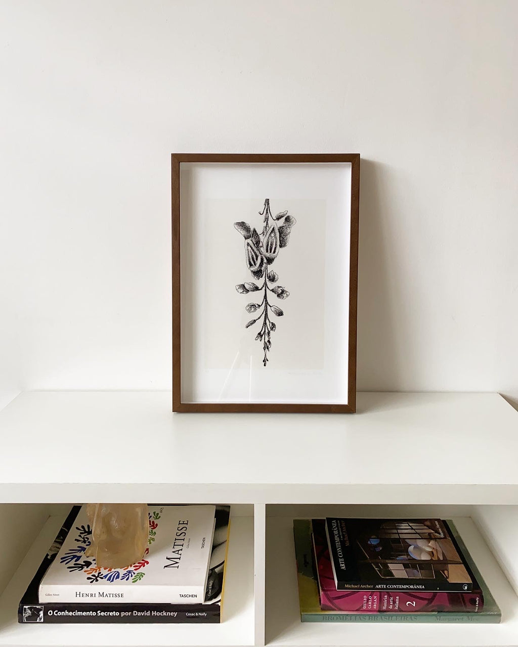 Impressões Fine Art feitas a partir de desenhos originais em carvão sobre papel, com tiragem limitada, numeradas e assinadas com lápis grafite na parte da frente. Cada obra é acompanhada por um certificado chancelado e assinado, atestando sua autenticidade.